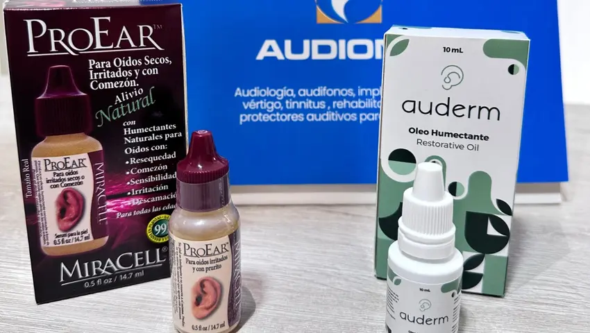 - Gotas humectantes para oídos secos, irritados y con comezón, Marca Proear Miracell y Auderm